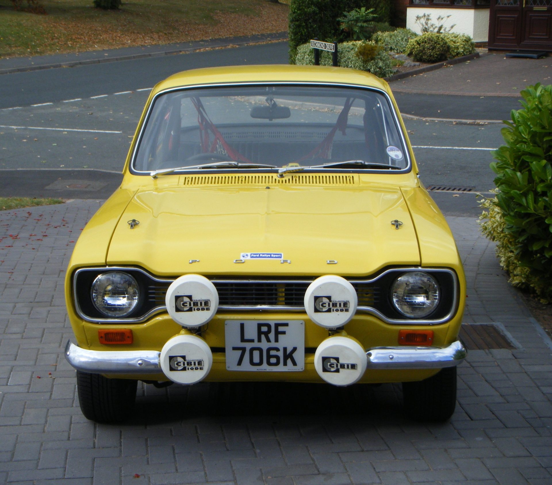 There’s a picture of Linda Jacksons Escort fitted with the huge lights on the RAC Rally in 1975.